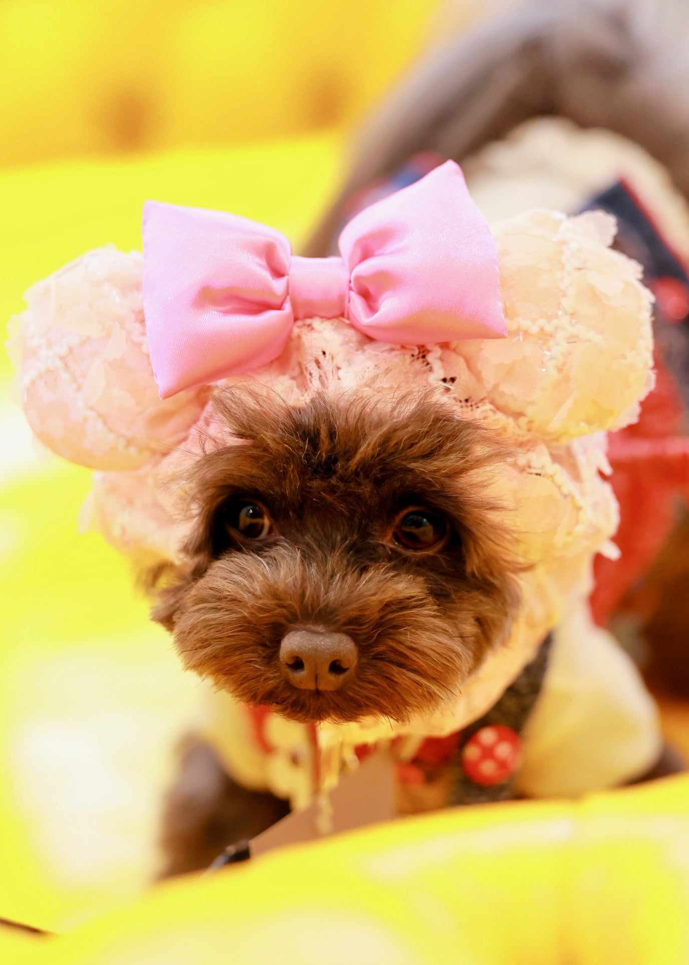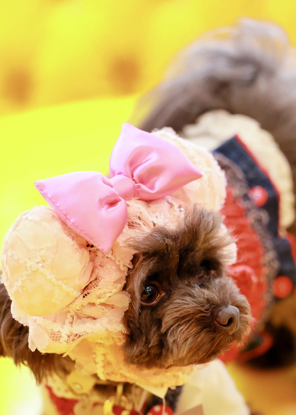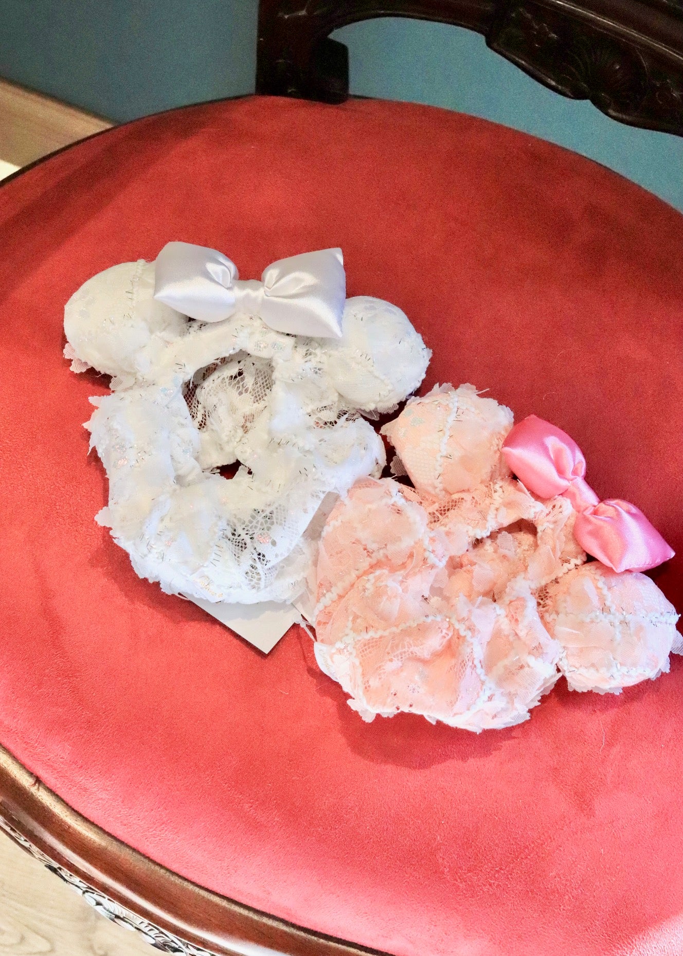 立体的なキラキラのレースにサテンリボンが華やかなスヌード♪