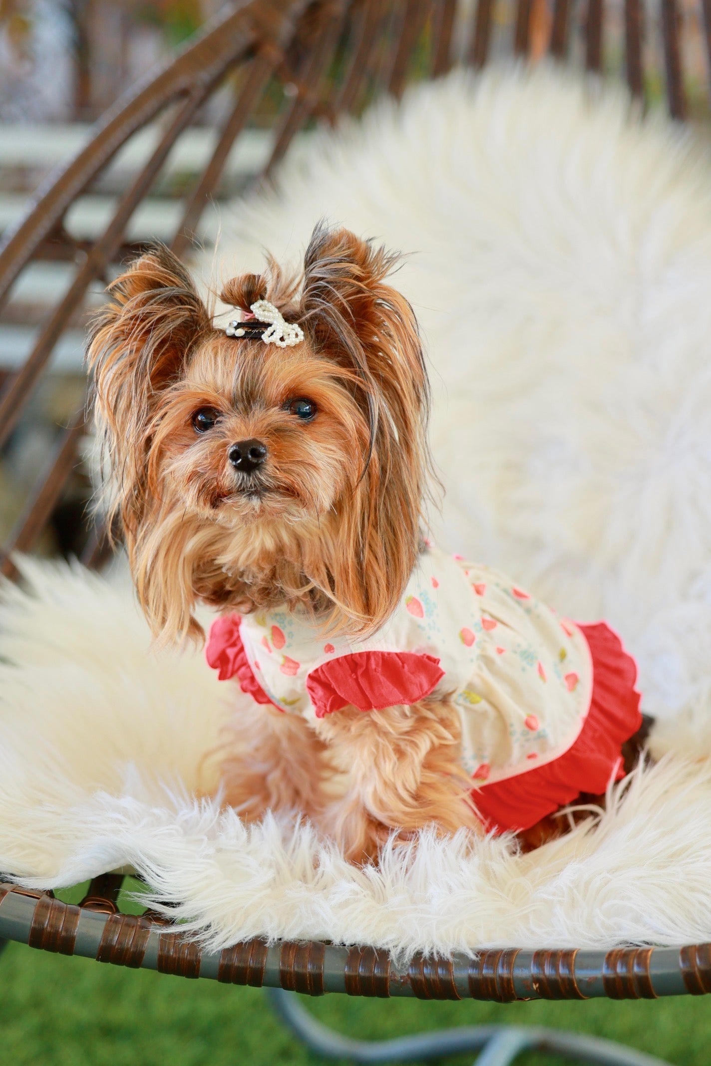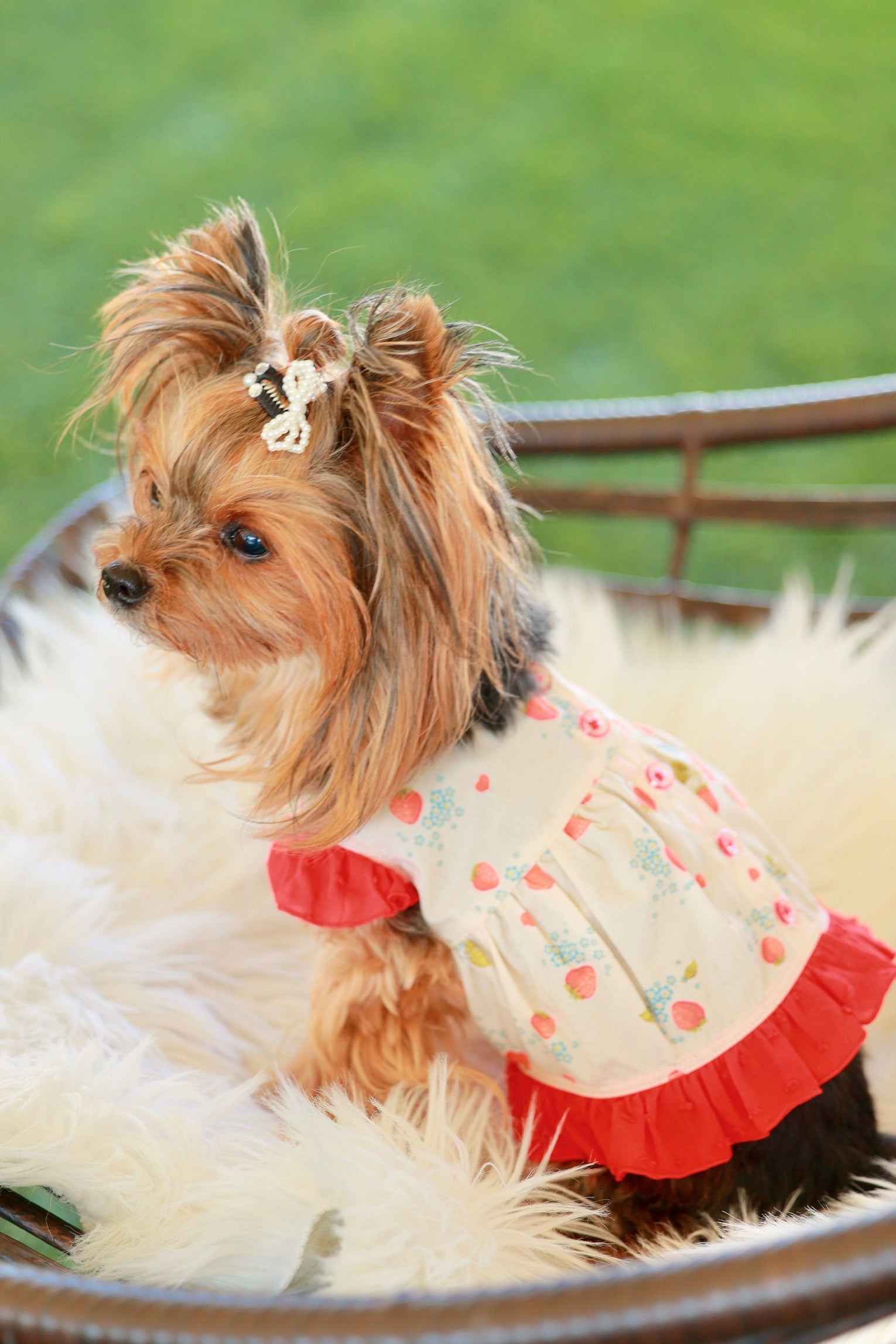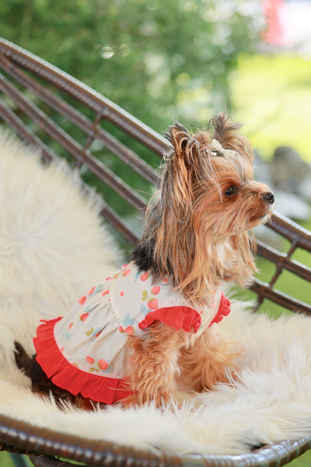 腕周りと裾周りにフリルをあしらった、背中開きのエプロン♪
