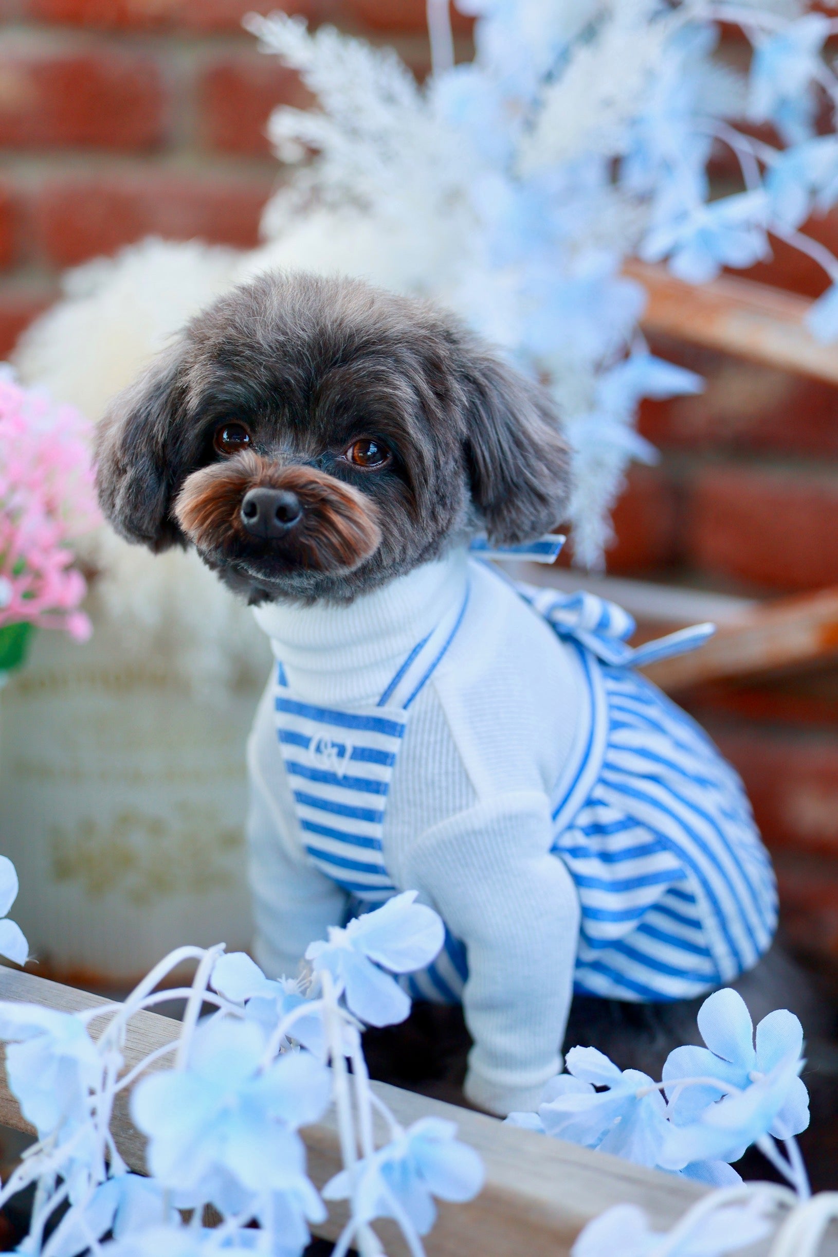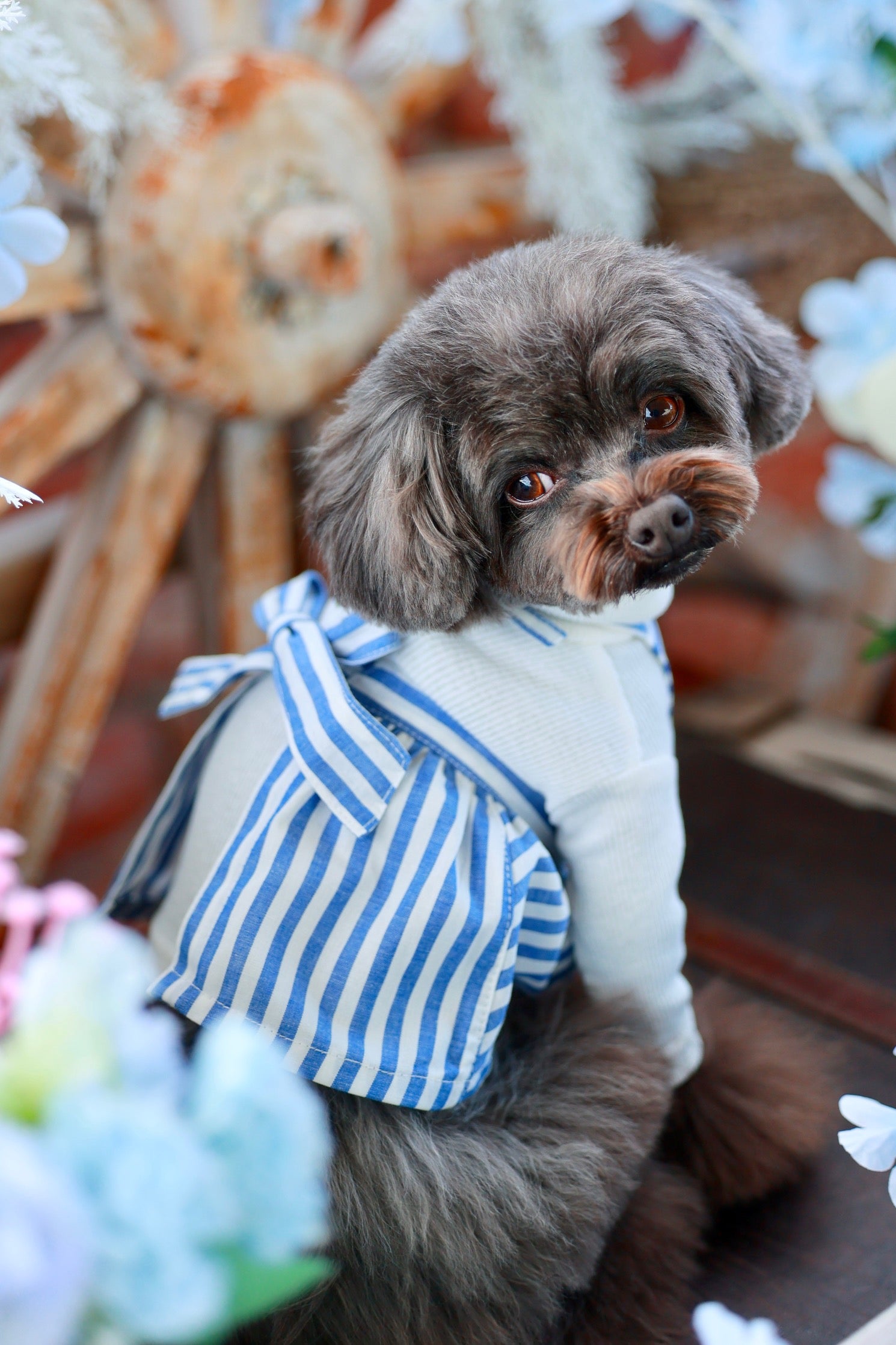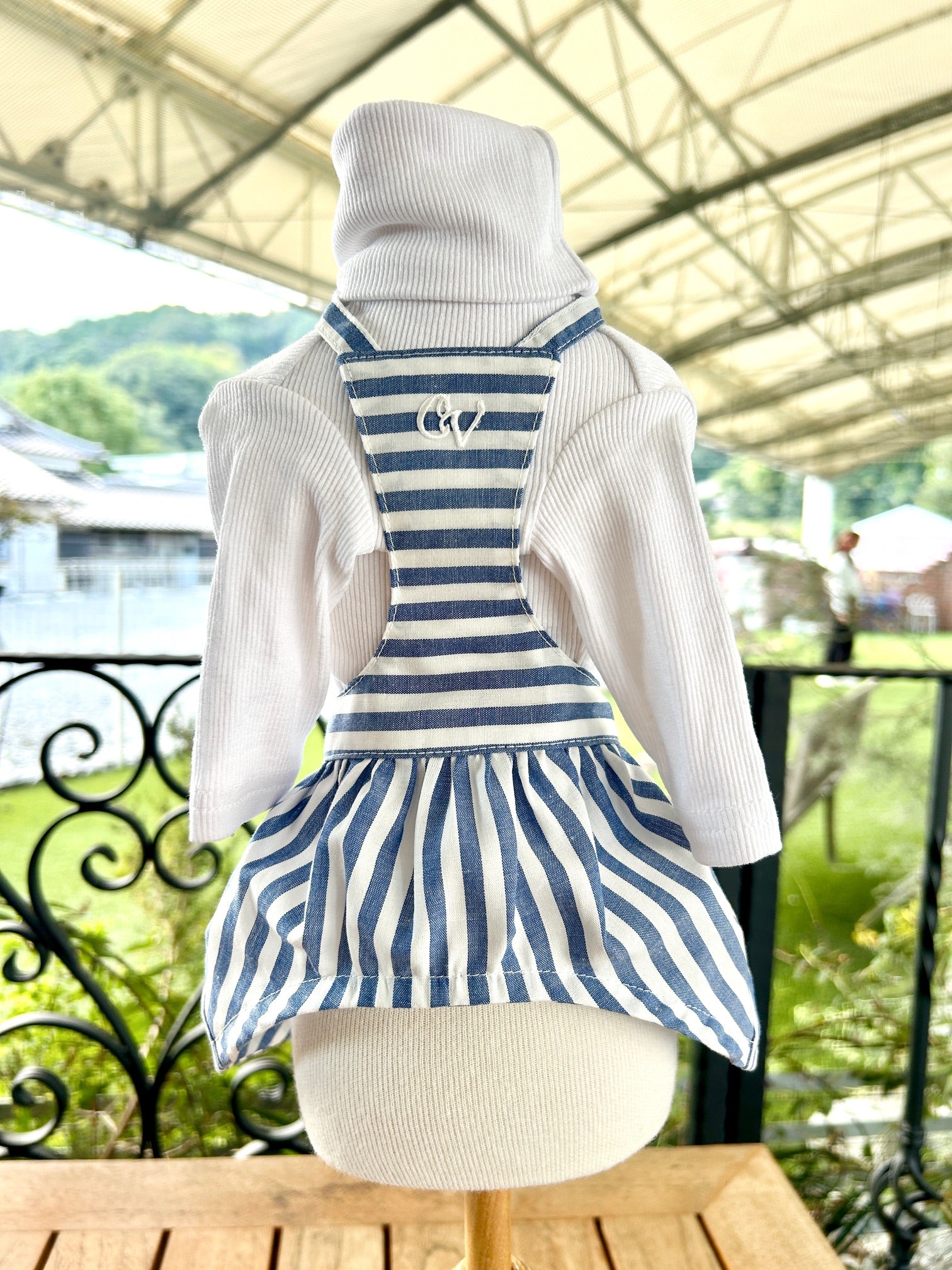 ブルーとホワイトのストライプ生地を使用した、ニューモデルのエプロン♪