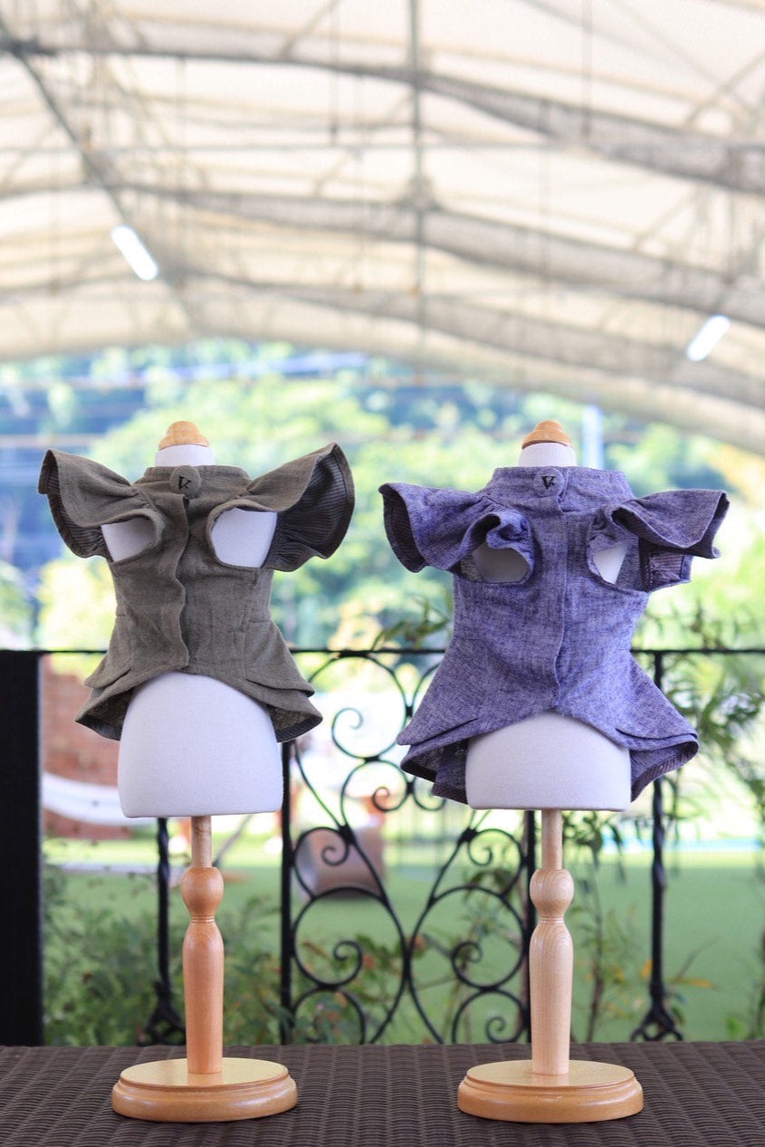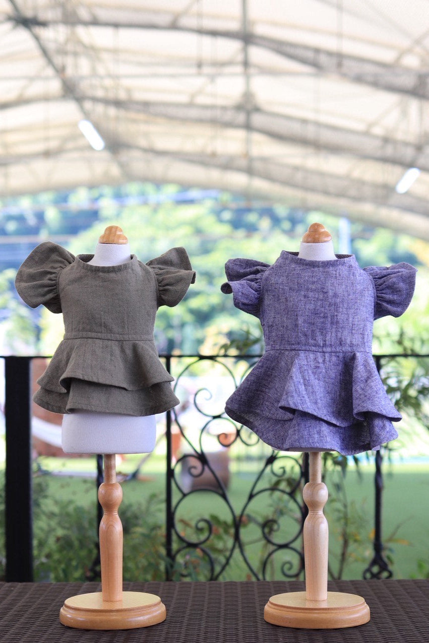 上品なふんわりフレアと、前から見ても可愛いお袖(^^♪ベルギーリネンの中でも、厳選された原料のみを使用した「プリミエルリネン」とコットンを混紡した、上質な先染め綿麻ダンガリーワッシャー生地。